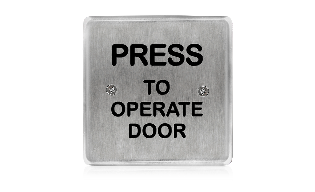 4.5 inch square, “press to operate door” text only